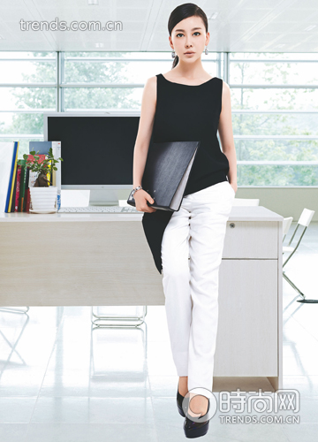 黑色下摆不对称上衣 Hussein Chalayan from I.T 白色长裤 Stella McCartney from I.T