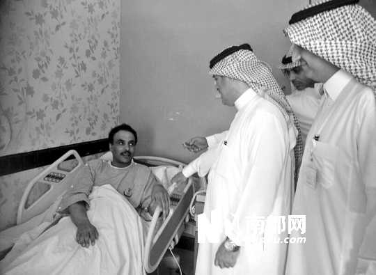 5月13日,沙特卫生部官员到医院探望感染新型冠状病毒的患者。