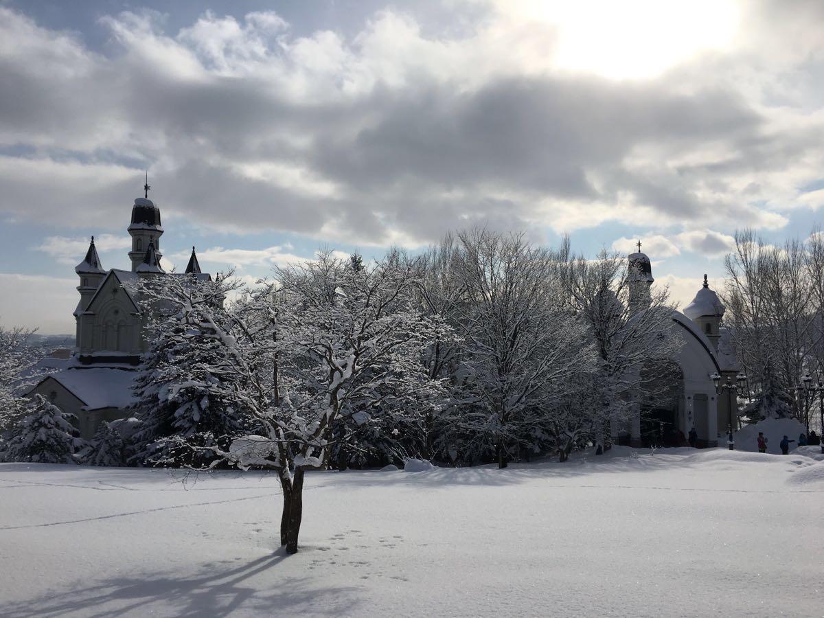 未进入雪之美术馆前就会被其外形深深吸引,博物馆的建筑采用欧洲中世纪造型,外面的空场上还有很厚的积雪白色的建筑内,一切也都是纯洁的白色,各种雪的造型设计六边形的旋转楼梯顺着楼梯下去,进入雪的世界。