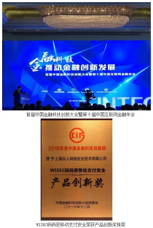 会议以“金融科技推动金融创新发展”为主题,旨在打造金融科技行业高端交流合作平台,推动产业发展。大会现场发布了《2016中国金融科技发展概览》,并对2016年度优秀金融科技创新企业和创新人物进行了表彰。其中,上海众人网络安全技术有限公司(以下简称“众人科技”)凭借在互联网金融以及移动支付安全方面的积极探索和专注研发,其WISEC码码密移动支付安全荣获2016年度中国金融科技产品创新奖殊荣。